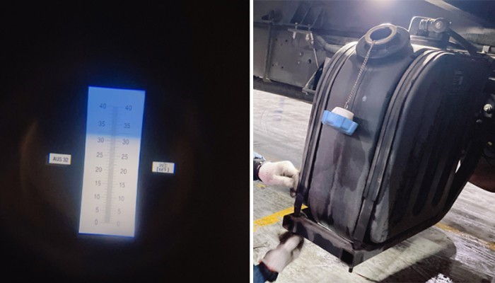 1. Kiểm tra nồng độ AdBlue bằng máy đo (Tiêu chuẩn 32,5%).