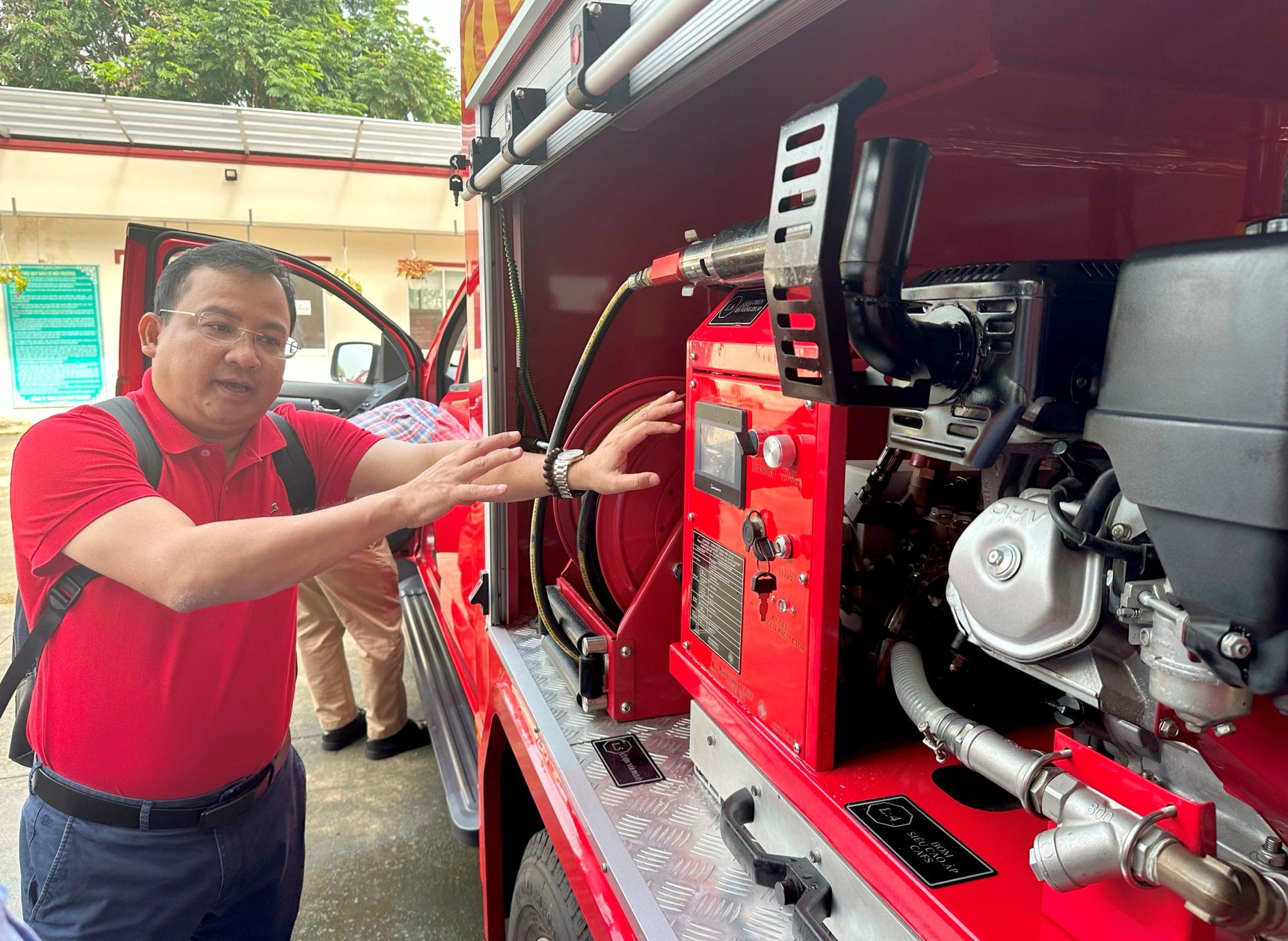 "Xe trang bị máy bơm có công suất lớn sẽ hỗ trợ tốt cho việc chữa cháy ban đầu. Trong công tác chữa cháy, thời gian mang yếu tố quyết định. Hoả hoạn phát hiện sớm thì dập tắt dễ dàng hơn, thiệt hại về người và tài sản sẽ ít hơn", Thượng tá Huỳnh Quang Tuyến khẳng định.